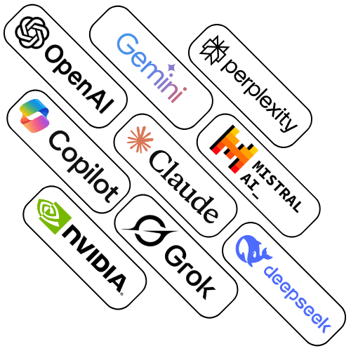 We work with a trusted set of AI platforms, including OpenAI, Perplexity, Gemini, Grok, Claude, and many more.